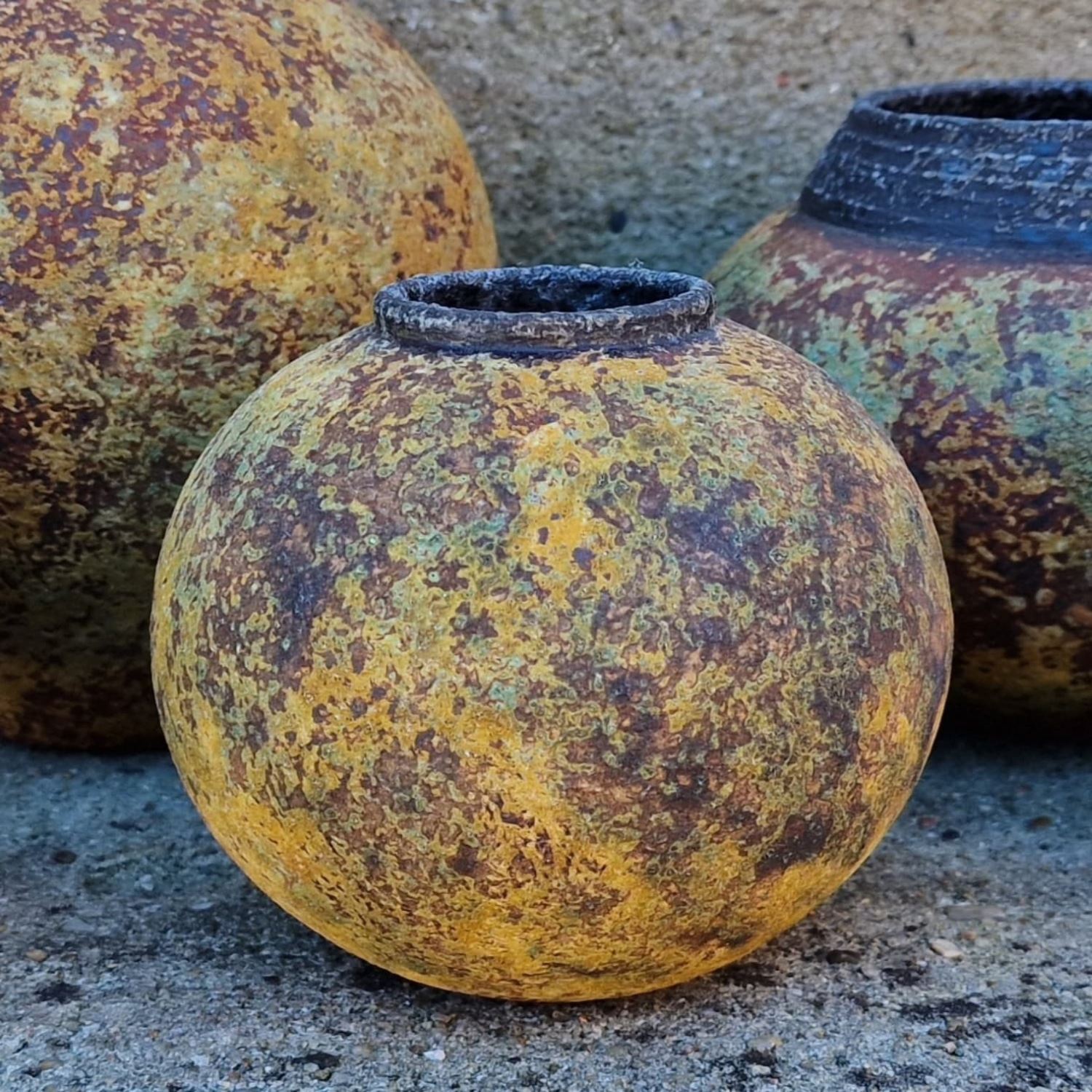 Desuden arbejdes med stentøj med hjemmelavede askeglasurer, som giver rustikke, unikke overflader.