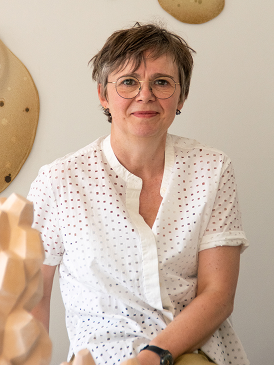 Sprouting shape 2024, H: 45 x 16 x 17 cm / Developmental Rhythm/ Pruned 2025, H: 28 x 23 x 17cm. Stentøj m. sinterbegitning. Fotograf Ole Akhøj