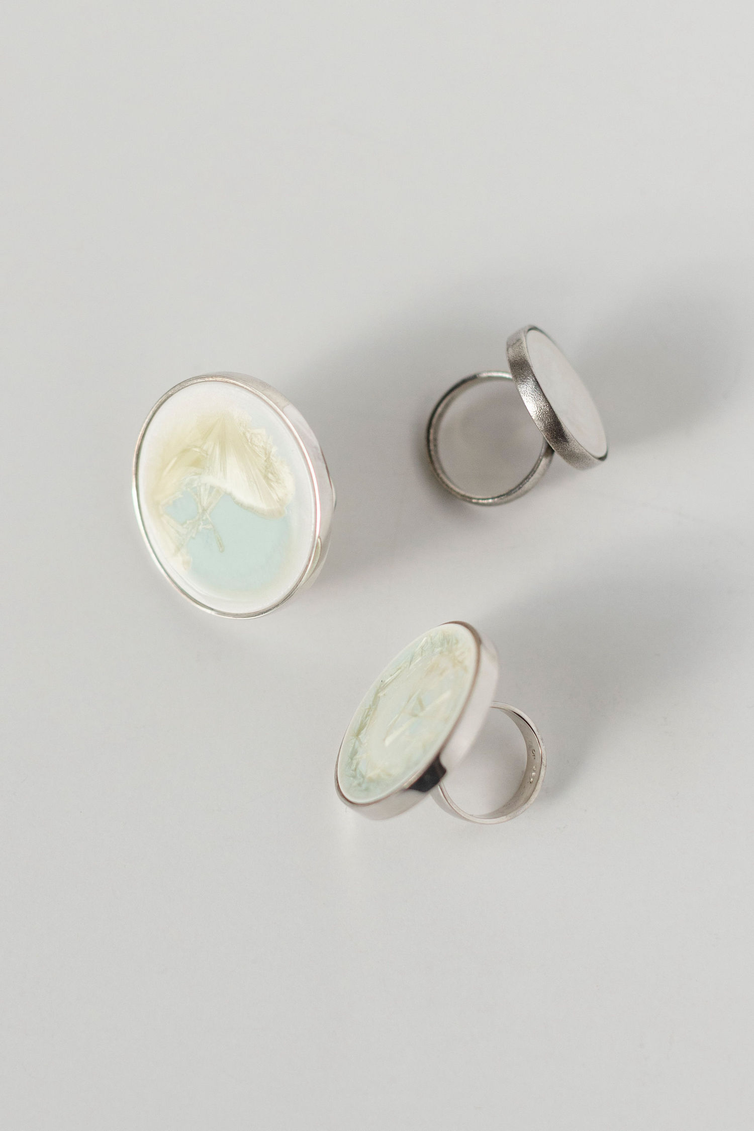 Når jeg er på marked, er mit koncept, at kunden kan vælge enten en færdig ring eller vælge sin favorit-porcelænstop og få målt sin fingerstørrelse. Derefter sender jeg toppen videre til min samarbejdspartner, smykkedesigner Jenny Christensen, som så fremstiller sølvdelen, så den passer til både top og finger.